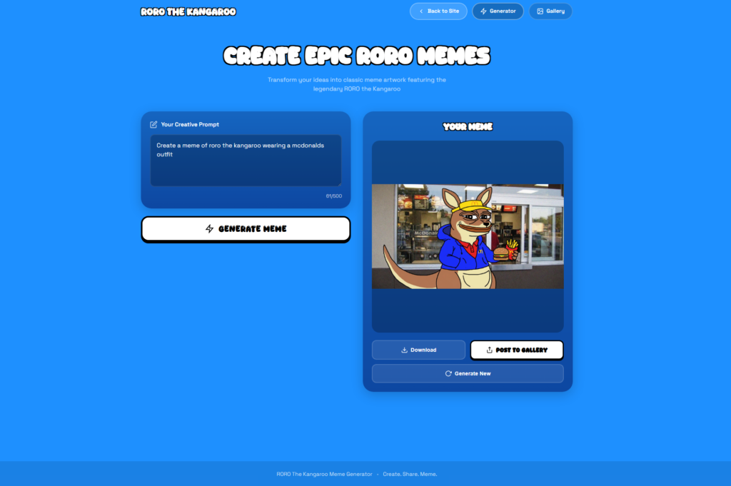 From down under to the world of memes Roro is ready to fck sht up on chain and out, with an infinite meme generator